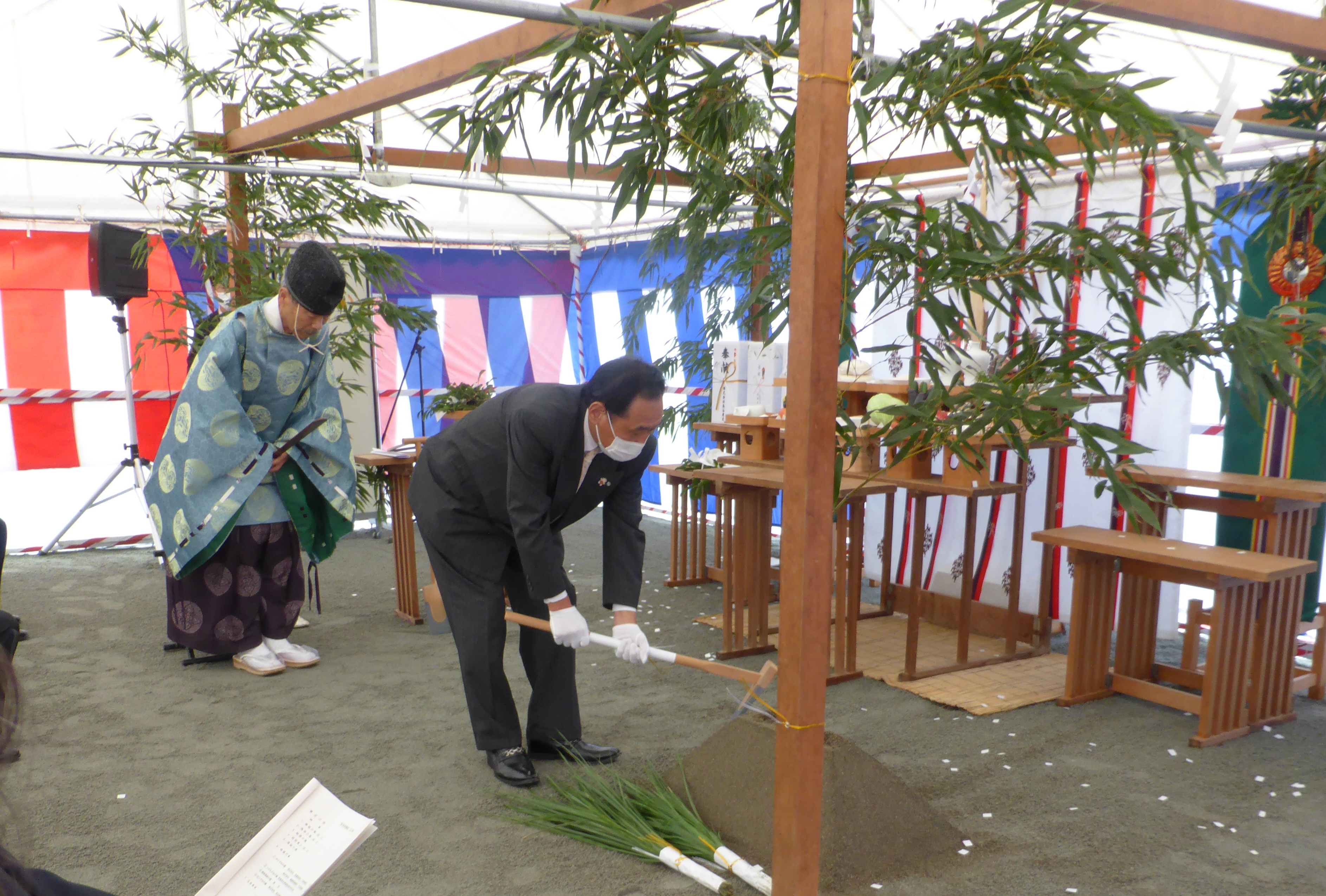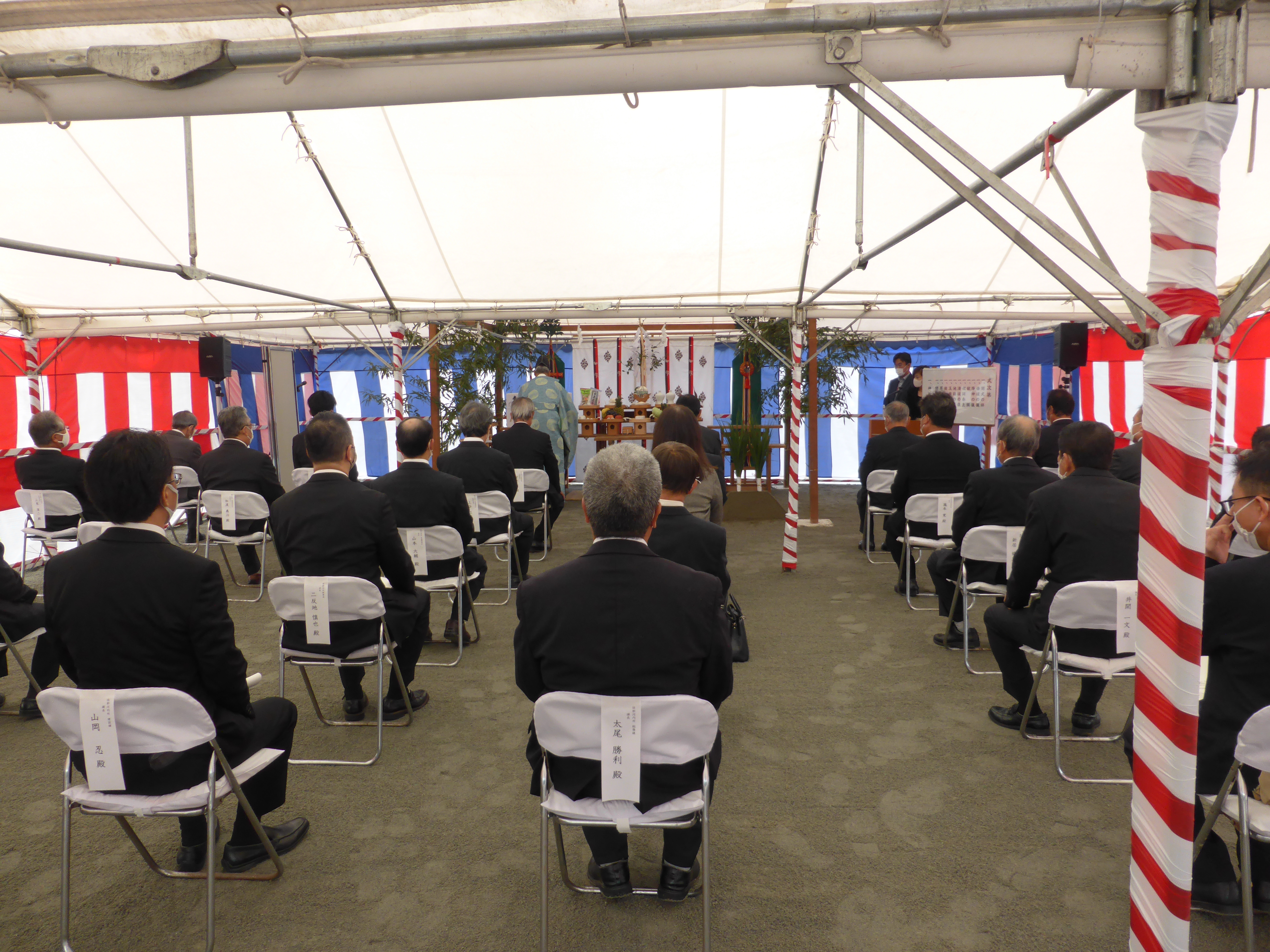 10月19日(月)午前10時から、佐那河内村新庁舎・消防センター建築工事の安全を祈願して、建設地において安全祈願祭が行われました。