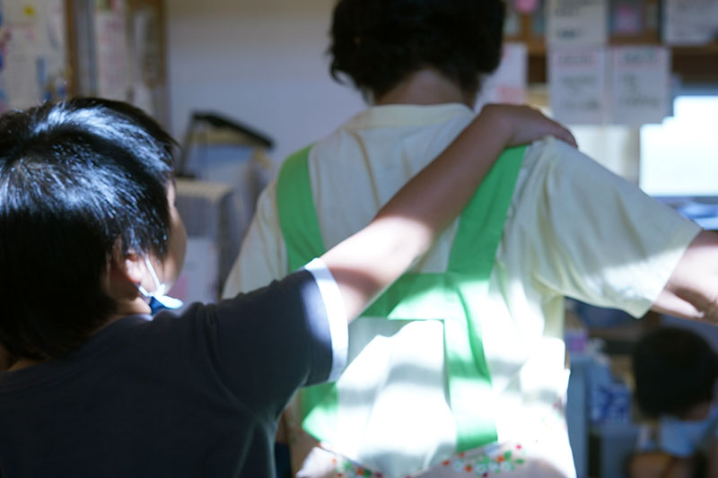 中山間地域の佐那河内村では、家と家が離れていることが多いため、児童同士が学校以外の場で遊ぶためには、保護者の送り迎えが必要なことがほとんどです。仕事を持っている保護者が多く、必然的に児童同士で遊ぶことは難しくなります。学校でもない自宅でもない隙間の学童は、子ども達にとって大事な時間です。「おやまっち」にも「やいちゃん」にも、その他のスタッフにも、遠慮なしに甘えて、低学年だったら抱っこをせがんだり、しがみついたり、スタッフからしたら体力勝負の仕事です。宿題を見てあげたり、ゲームを一緒にしたり、揉め事の仲裁をしたり、やるべきことも多いはず。だけど、いつでも児童達のことをよく見て、向き合ってくれて、時には指導もしてくれて、本当にありがたい存在です。近所の人の顔さえ知らない、知っている人にもついていってはいけないと指導される都会では失われしまった「地域」のあり方が、佐那河内村にはまだあります。児童達は、自分が社会の中で生きていること、社会に関わって生きていくことを自然に学んでいるのです。
