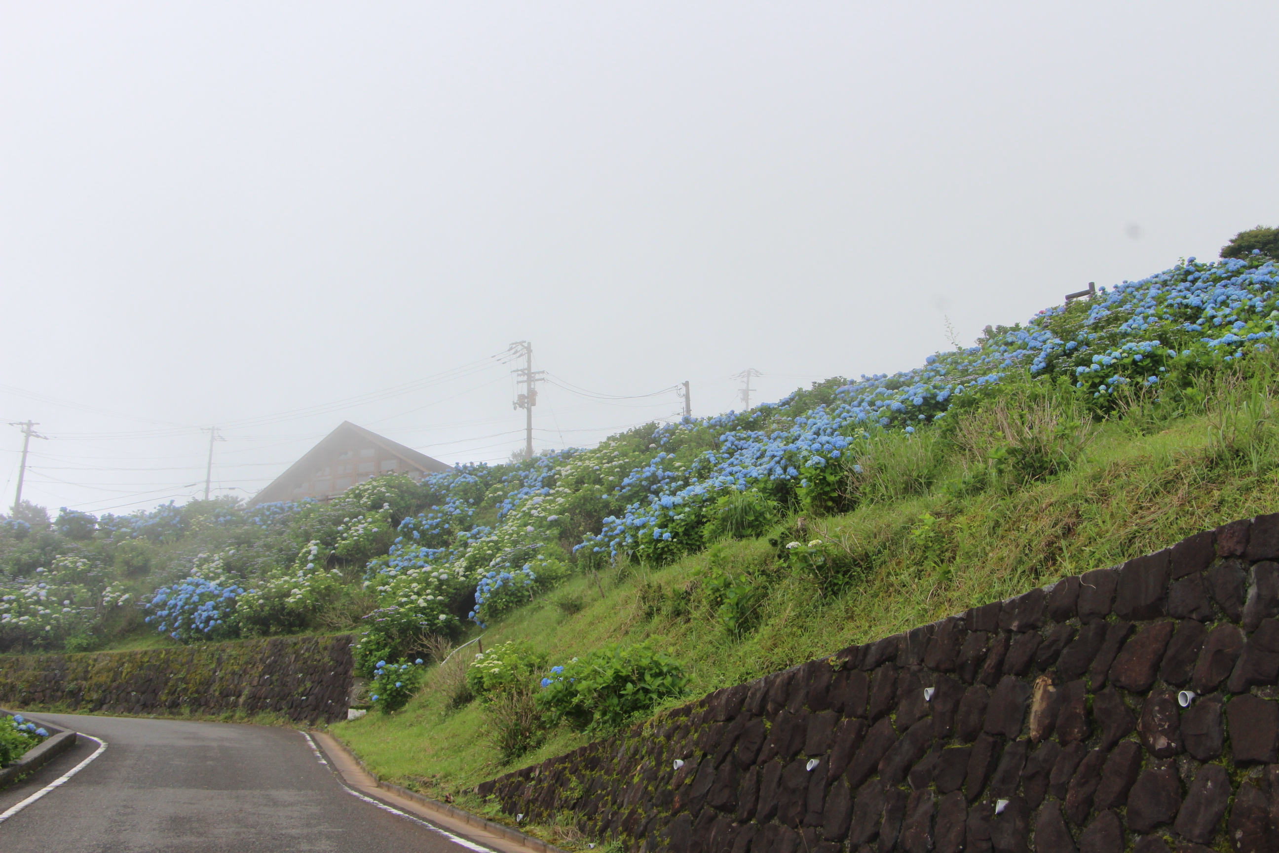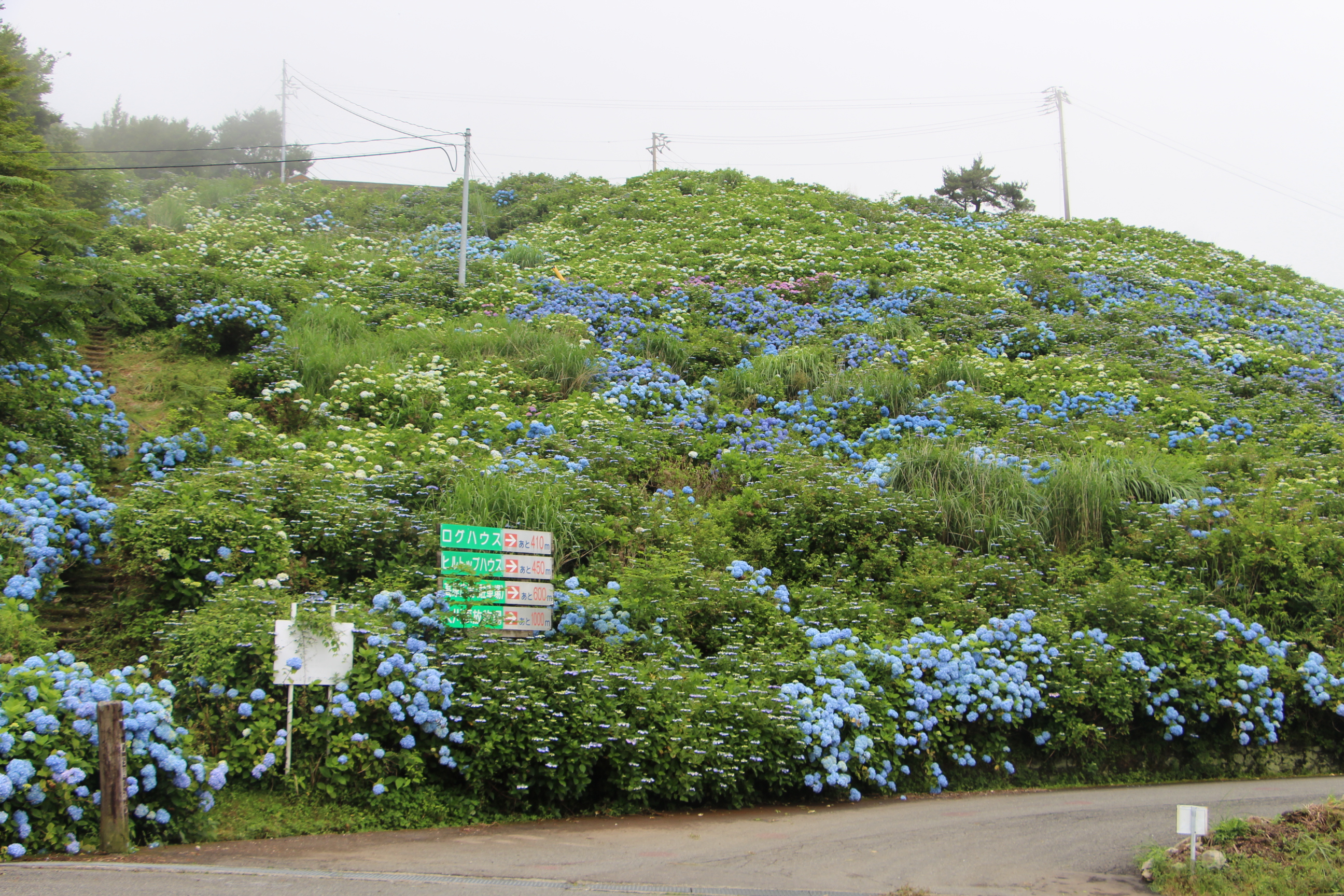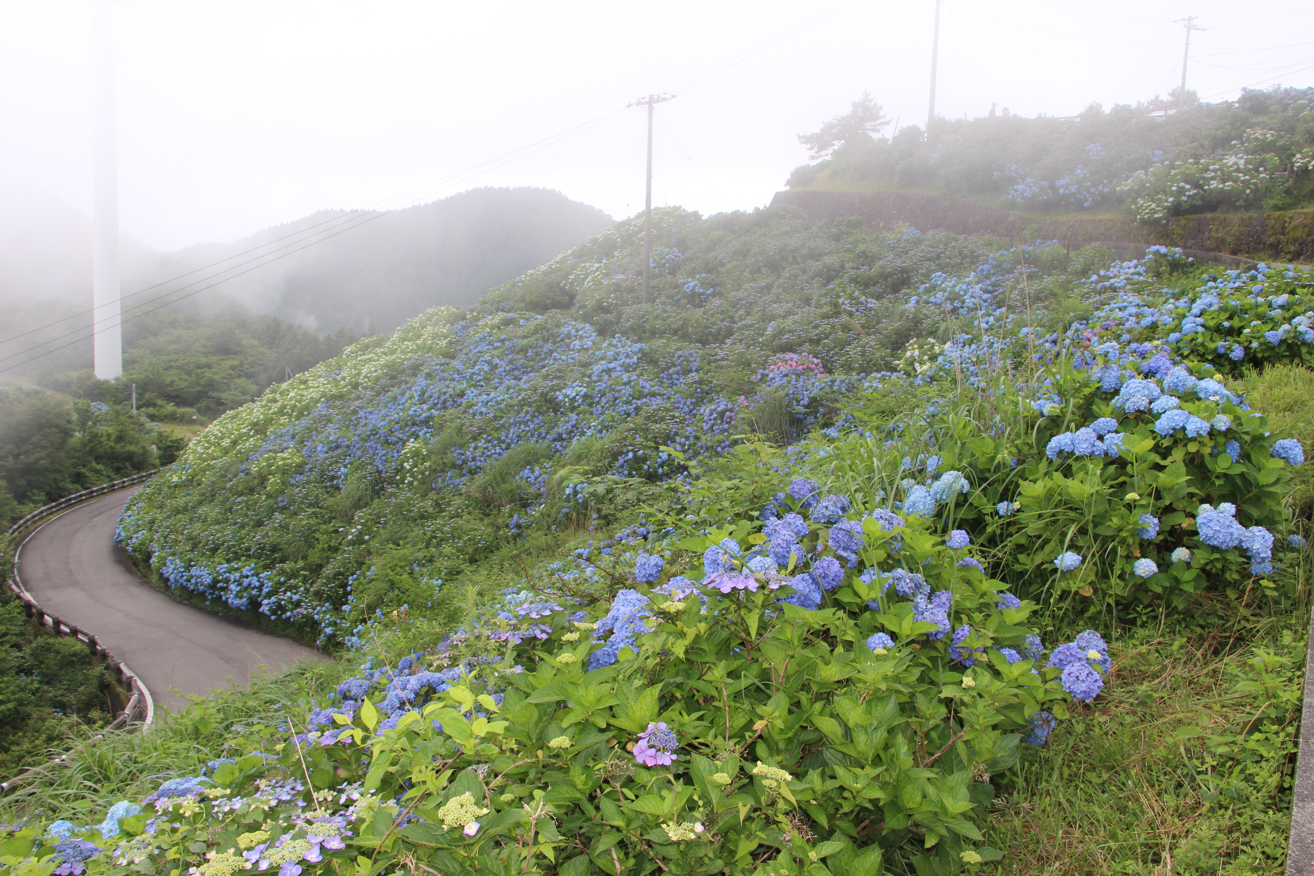 現在、大川原高原全体では6~7割くらいのあじさいが開花しています。
